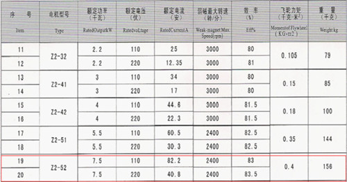 Z2-52 7.5KW/110V直流電機參數(shù)圖