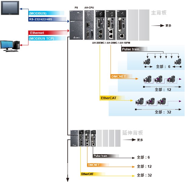 提供 EtherCAT、DMCNET 與 Pulse-train 等運動控制接口