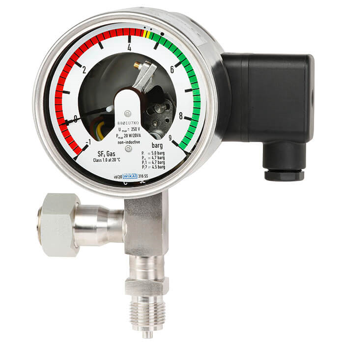 威卡氣體密度測量儀能可靠地發(fā)出警示,即使在嚴(yán)苛的環(huán)境下,也能防止出現(xiàn)氣體低密度的危險。當(dāng)氣體密度因泄漏而降至設(shè)定值以下時,電子開關(guān)觸點會向設(shè)備操作員發(fā)出警示。